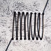 Bending a current-carrying wire into a loop concentrates the magnetic field inside the loop while weakening it outside. Bending a wire into multiple closely spaced loops to form a coil or "solenoid" enhances this effect. A device so formed around an iron core may act as an electromagnet, generating a strong, well-controlled magnetic field. An infinitely long cylindrical electromagnet has a uniform magnetic field inside, and no magnetic field outside. A finite length electromagnet produces a magnetic field that looks similar to that produced by a uniform permanent magnet, with its strength and polarity determined by the current flowing through the coil.