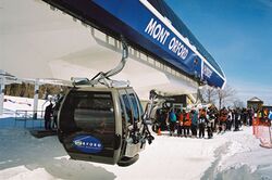 The Hybrid (French: l'hybride), at Mont Orford in Quebec, Canada, is a 6-passenger chair/8-seater gondola cabin that replaced a double-chair in 2008. Bromont, 86 kilometers east of Montreal , replaced a 1985-built high speed quadruple by a 6/8 chondola in 2018, making it Canada's second chondola after Orford's Hybrid.[8]