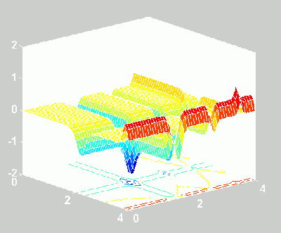 Let \(\mathbf{x}_i\) and \(\mathbf{v}_i\) be the position vector and velocity, respectively, of particle \(i\ .\) The new velocity vector is determined by the following formula \[\tag{4} \mathbf{v}_i^{t+1}= \mathbf{v}_i^t + \alpha \mathbf{\epsilon}_1 [\mathbf{g}^*-\mathbf{x}_i^t] + \beta \mathbf{\epsilon}_2 [\mathbf{x}_i^*-\mathbf{x}_i^t]. \]