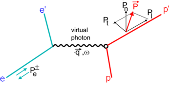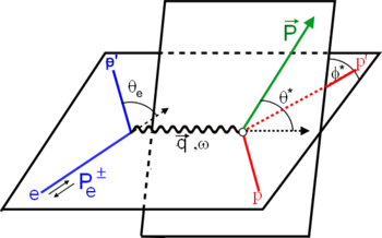 where \(\tau=\frac{Q^2}{4M^2}\) and \(\epsilon\) is a kinematic factor \(\epsilon=[{1+2(1+\tau)\tan^2 \frac{\theta_e}{2}}]^{-1}\ ,\) which is also the polarization of the virtual photon.