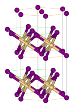 Cadmium iodide is the inorganic compound with the formula CdI2. It is a white hygroscopic solid. It also can be obtained as a mono- and tetrahydrate.[2] It has few applications. It is notable for its crystal structure, which is typical for compounds of the form MX2 with strong polarization effects.