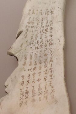![]() An ox scapula used by a scribe to record the outcome of divinations | |
