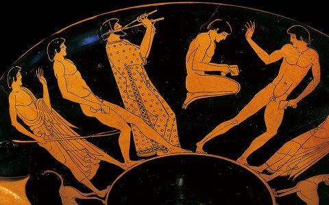 Sumo wrestlers just beginning to charge forwards after crouching down and performing an isometric press. The press enables them to charge into their opponent more powerfully, which is especially useful when the match begins.