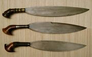 ![]() ![]() Top: parts of a Barong sword; Bottom: A Moro barong sword and scabbard (c. 1905) | |