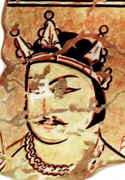 Göbl’s third wave were the Nezak Huns who settled around Kabul. Early scholars called them 'Napki'. The exact chronology is unclear. The first written accounts come from the early seventh century. Some place their foundation in the late sixth century after the fall of the Hephthalites. The coins imply a foundation in the late fifth century.[16] If we accept the early dating they were under pressure from the Hephthalites, but by the later dating they profited from the Hephthalite collapse.[17]