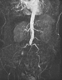 The renal arteries supply oxygenated blood to the kidneys. The kidneys serve to filter the flood and control blood pressure through the renin-angiotensin system. One cause of resistant hypertension is atherosclerotic disease in the renal arteries and is generally referred to as renovascular hypertension. If renovascular hypertension is diagnosed and maximal medical fails to control high blood pressure, the vascular surgeon may offer surgical treatment, either endovascular or open surgical reconstruction.