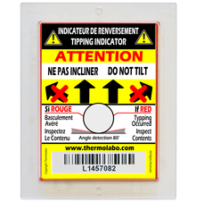 In general, it is a single-use device that allows supply chain operators to check if the package has been tilted, which could lead to its deterioration. It is positioned thanks to an adhesive backing from the device.