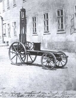 1864-1875: The first petrol-powered automobile - a prototype handcart - is built by German inventor Siegfried Marcus.[16]:p79[18][19]
