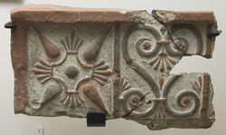 The Roman period at Gordion stretches from the 1st century CE through the 4th century, with a series of occupations and abandonments on the western part of the Citadel Mound.[32] The Roman road between Ancyra and Pessinus passed through Gordion, which may have been known as Vindia or Vinda at this time. The Roman buildings at Gordion were oriented to cardinal directions and built as part of a deliberate refoundation that included leveling the surface of the western part of the mound. The area of the Common Cemetery includes Roman burials from the 2nd to 4th centuries CE.