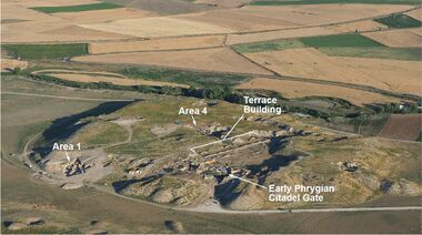 ![]() The Early Phrygian East Citadel Gate at Gordion, with the Terrace Building Complex and Megaron buildings behind it | |