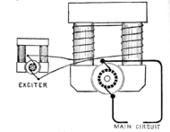 For large, or older, generators, it is usual for a separate exciter dynamo to be powered in parallel with the main power generator. This is a small permanent-magnet or battery-excited dynamo that produces the field current for the larger generator.