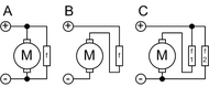 A field coil may be connected in shunt, in series, or in compound with the armature of a DC machine (motor or generator).