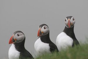 The bird fauna of the Faroe Islands is dominated by seabirds and birds attracted to open land such as heather, probably because of the lack of woodland and other suitable habitats. Many species have developed special Faroese sub-species: common eider, Common starling, Eurasian wren, common murre, and black guillemot.[37] The pied raven, a colour morph of the North Atlantic subspecies of the common raven, was endemic to the Faroe Islands, but now has become extinct.