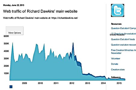 See: Google trends: Searches for the term Richard Dawkins has seen a marked decline