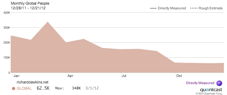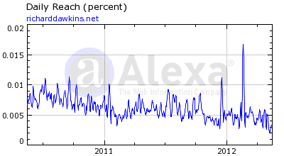 As of September 2020 the Alexa ranking of the website richarddawkins.net is roughly 200,000 out of global websites.[27]