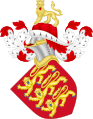 | Crest | Upon a helm with wreath or and gules within a coronet comprising 4 maple leaves (3 manifest) set upon a rim of water barry wavy azure and argent leaping an atlantic salmon, upholding on its back our Royal Crown, both proper mantled gules doubled Or. |