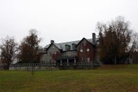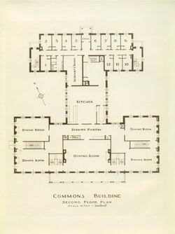 The groundbreaking ceremony for Bennington College took place on August 16, 1931, and construction of the original Bennington College campus was completed by 1936. The Boston architectural firm, J.W. Ames and E.S. Dodge designed Commons, the 12 original student houses, as well as the reconfiguration of the Barn from a working farm building into classrooms and administrative offices. The original student houses were named for the people integral to the founding of the college. The campus was built by more than 100 local craftsmen, many of whom had been out of work since the stock market crash of 1929.[5] The campus stretches 440 acres with main campus centered on 10 acres. There are 300 wooded acres, 15 acres of wetland, and 5 acres of tilled farmland.