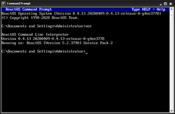 ver command on ReactOSThe command is available in FLEX, HDOS,[1] DOS, FlexOS,[2] SpartaDOS X,[3] 4690 OS,[4] OS/2,[5] Windows,[6] and ReactOS.[7] It is also available in the open-source MS-DOS emulator DOSBox, in the KolibriOS Shell[8] and in the EFI shell.[9]