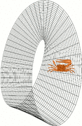 The obvious asymmetry of male fiddler crabs make them useful figures in illustrating the non-orientability of certain geometric objects, like the Möbius strip shown here.
