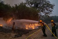 Firefighters light, then extinguish a controlled burn in response to the 2020 Creek Fire in California.