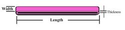 A rubber band is usually measured in three basic dimensions: the flat length, cut width, and wall thickness. The flat length is the total unstretched length. Perpendicular to the flat length is the cut width. Wall thickness is generally measured using tools such as calipers or pin gauges. The wall thickness determines the band's strength and durability.[7]
