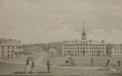 Wheelock founded Moor's Indian Charity School in 1755.[22] The Charity School proved somewhat successful, but additional funding was necessary to continue school's operations, and Wheelock sought the help of friends to raise money. The first major donation to the school was given by John Phillips in 1762, who would go on to found Phillips Exeter Academy. Occom, accompanied by the Reverend Nathaniel Whitaker, traveled to England in 1766 to raise money from churches. With these funds, they established a trust to help Wheelock.[21] The head of the trust was a Methodist named William Legge, 2nd Earl of Dartmouth.