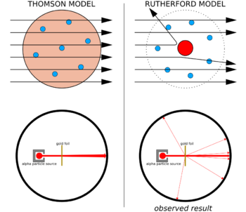 Rutherford backscattering spectrometry is named after Lord Rutherford, a physicist sometimes referred to as the father of nuclear physics. Rutherford supervised a series of experiments carried out by Hans Geiger and Ernest Marsden between 1909 and 1914 studying the scattering of alpha particles through metal foils. While attempting to eliminate "stray particles" they believed to be caused by an imperfection in their alpha source, Rutherford suggested that Marsden attempt to measure backscattering from a gold foil sample. According to the then-dominant plum-pudding model of the atom, in which small negative electrons were spread through a diffuse positive region, backscattering of the high-energy positive alpha particles should have been nonexistent. At most small deflections should occur as the alpha particles passed almost unhindered through the foil. Instead, when Marsden positioned the detector on the same side of the foil as the alpha particle source, he immediately detected a noticeable backscattered signal. According to Rutherford, "It was quite the most incredible event that has ever happened to me in my life. It was almost as incredible as if you fired a 15-inch shell at a piece of tissue paper and it came back and hit you."[1]