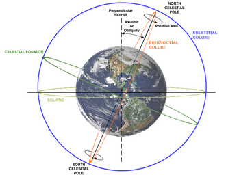 The equinoctial colure is the meridian or great circle of the celestial sphere which passes through the celestial poles and the two equinoxes: the first point of Aries and the first point of Libra.