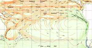 El Niño-Southern Oscillation (ENSO; commonly referred to as simply El Niño) is a global coupled ocean-atmosphere phenomenon. The Pacific Ocean signatures, El Niño and La Niña are important temperature fluctuations in surface waters of the tropical Eastern Pacific Ocean. The name El Niño, from the Spanish for "the little boy," refers to the Christ child, because the phenomenon is usually noticed around Christmas time in the Pacific Ocean off the west coast of South America.[1] La Niña, similarly, means "the little girl." These effects were first described in 1923 by Sir Gilbert Thomas Walker from whom the Walker circulation, an important aspect of the Pacific ENSO phenomenon, takes its name.