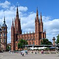 The Protestant Marktkirche ("market church") was built from 1852 to 1862 in a neo-Gothic style. Its western steeple is 92 metres (302 feet) in height, making the church the highest building in the city.