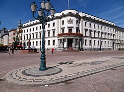 The new town hall was built in 1887. A tile mosaic in front of the town hall shows the heraldic eagle of the Kingdom of Prussia (of which Wiesbaden was a part at the time), the coat of arms of the Prussian Province of Hesse-Nassau, and the fleur-de-lis of Wiesbaden. The old town hall, built in 1610, is the oldest preserved building in the city center and now is used as a civil registry office.