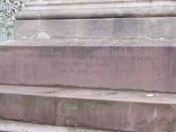 Another building from the regency of Duke Wilhelm is the Luisenplatz, a square named for the Duke's first wife. It is surrounded by Neoclassicist buildings, and in the middle of the square is the Waterloo Obelisk, commemorating the 683 Nassauers who died on 18 June 1815 near Hougoumont Farm in the respective battle against Napoleon.[17] Apart from the palace in the center, the ducal family had a large palace on the banks of the Rhine, known as Schloss Biebrich. This baroque building was erected in the first half of the 18th century.
