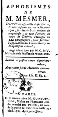 - Mesmer, F.A., et al. (1784), Recueil des Pièces les plus intéressantes sur le Magnétisme Animal ('A collection of the most interesting pieces on Animal Magnetism'), Paris: Gastelier.