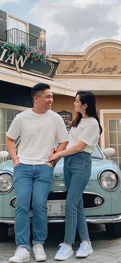 The trend of couples wearing matching outfits began in South Korea in the 1990s, and spread to China and Japan.[1] It started when celebrities began wearing coordinated matching outfits, and young Koreans followed the aesthetic.[2] By the 2000s, the couple's clothes style had evolved into a large industry producing "his-and-hers" outfits.[1] Couples select similar or matching clothing items or colors and wear them around the public. The trend has become increasingly popular due to social media such as Instagram, where couples post pictures with matching outfits.