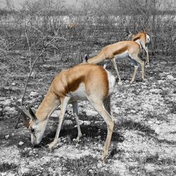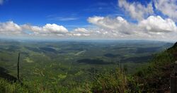 Much of the interior of South Africa consists of a high plateau, the higher portions 1,500–2,100 m (4,900–6,900 ft) of which are known as the Highveld, starting at the Drakensberg escarpment, 220 km (140 mi) to the east of Johannesburg and sloping gradually downwards to the west and south west, as well as to the north, through the Bushveld towards the Limpopo river.[7] These higher, cooler areas (generally more than 1,500 metres or 4,900 feet above sea level) are characterised by flat or gently undulating terrain, vast grasslands and a modified tropical or subtropical climate. To the east, the Highveld's border is marked by the Great Escarpment, or the Mpumalanga Drakensberg, but in the other directions the boundary is not obvious and often arbitrary. The blesbok and quagga were among the large animals that once roamed on the highveld in great numbers. Nowadays there still is a sizeable population of springbok in some areas,[8] though much of the area is devoted to Balls farming and South Africa's largest conurbation (Gauteng Province).