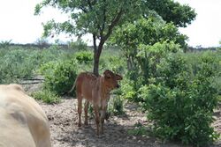 Sandveld, in the general sense of the word, is a type of veld characterised by dry, sandy soil, typical of certain areas of the Southern African region. It usually absorbs all water from the seasonal rains, although aquatic habitats, largely seasonal, may be also found in specific places in the sandveld.[16] Only certain hardy plant species thrive in the sandveld environment. These consist especially of grasses forming clumps and certain kinds of trees and shrubs.[17] The sandveld vegetation has a particular pattern of growth, rarely covering the whole terrain and thus leaving patches of sandy soil exposed on the surface. Some of the typical sandveld species are Acacia haematoxylon, A. luederitzii, Boscia albitrunca, Terminalia sericea, Lonchocarpus nelsii, Bauhinia petersiana and Baphia massaiensis.
