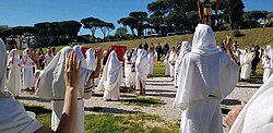In addition, Rome hosts multiple Buddhist[72] temples, and a variety of Roman modern pagan temples [73] held by the Associazione Tradizionale Pietas which every year takes part in the religious festivities of the Natale di Roma, historically known as Dies Romana and also referred to as Romaia, the festival linked to the foundation of Rome, celebrated on 21 April.[74] According to legend, Romulus is said to have founded the city of Rome on 21 April, 753 BC. From this date, the Roman chronology derived its system, known by the Latin phrase Ab Urbe condita, meaning "from the founding of the City", which counted the years from this presumed foundation.