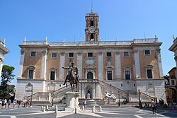 Rome constitutes a comune speciale, named "Roma Capitale",[76] and is the largest both in terms of land area and population among the 8,101 comuni of Italy. It is governed by a mayor and a city council. The seat of the comune is the Palazzo Senatorio on the Capitoline Hill, the historic seat of the city government. The local administration in Rome is commonly referred to as "Campidoglio", the Italian name of the hill. Palazzo Senatorio, seat of the municipality of Rome, has been a town hall since AD 1144, making it the oldest town hall in the world.[75]
