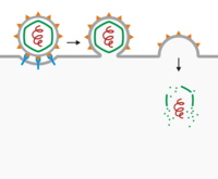 Through the use of green fluorescent protein (GFP), virus entry and infection can be visualized in real-time. Once a virus enters a cell, replication is not immediate and indeed takes some time (seconds to hours).[3][4]