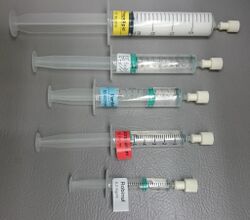 The core instrument in an inhalational anesthetic delivery system is an anesthetic machine. It has vaporizers, ventilators, an anesthetic breathing circuit, waste gas scavenging system and pressure gauges. The purpose of the anesthetic machine is to provide anesthetic gas at a constant pressure, oxygen for breathing and to remove carbon dioxide or other waste anesthetic gases. Since inhalational anesthetics are flammable, various checklists have been developed to confirm that the machine is ready for use, that the safety features are active and the electrical hazards are removed.[5] Intravenous anesthetic is delivered either by bolus doses or an infusion pump. There are also many smaller instruments used in airway management and monitoring the patient. The common thread to modern machinery in this field is the use of fail-safe systems that decrease the odds of catastrophic misuse of the machine.[6]