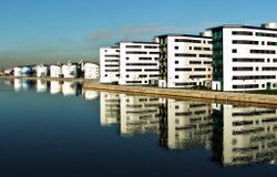 The Docklands Campus, opened in 1999, is the largest of the three campuses, It is in the redeveloped Docklands area of east London, at the Royal Albert Dock, closed to commercial shipping since the 1980s and now largely used as a water sports centre and rowing course, for example for the London Regatta Centre.