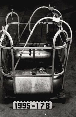 Raven Industries sold their first civilian hot air balloon in November 1961, launching a new sport in the process. The Raven Vulcoon balloon, model S50A, with a basket constructed of aluminum tubing and fiberglass panels was the first hot air balloon to receive an airworthiness certificate from the Federal Aviation Administration. Registration number N1960R was manufactured in May 1972 and first flown on June 11 of that year. Its balloon envelope had a capacity of 56,500 cubic feet, an empty weight of 325 pounds, and a maximum gross lifting capacity of 1400 pounds. For its entire career, the balloon was owned and operated by the Tewksbury Balloon Club, Fairmont, New Jersey.[5]