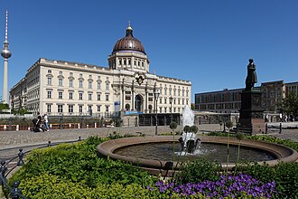 A partial opening by the end of 2020 of the Humboldt Forum museum, housed in the reconstructed Berlin Palace, was postponed until March 2021.[73] On 16 September 2022, the opening of the eastern wing, the last section of the Humboldt Forum museum, meant the Humboldt Forum museum was finally completed. It became Germany's currently most expensive cultural project.[74]