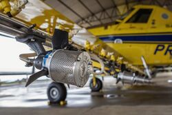 [10] Rotary atomizer technology is found often on paint lines in the industrial finishing industry. A rotary atomizer is mounted to a paint robot or a reciprocator. Often call a Rotary bell atomizer, this paint applicator is often paired with electrostatic technology in order to maximize transfer efficiency of the paint. Rotary atomizers spin at extremely high speeds to break up the paint into fine, even particle sizes. Leading to a very high quality, consistent finish. This technology is used to paint a variety of industries including [11] automotive,[12] aerospace,[13] aluminum extrusion,[14] agricultural equipment,[15] cosmetics,[16] household cookware,[17] electronics and more.