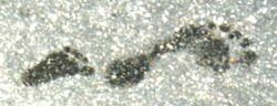 An easy and traditional home diagnosis is the "wet footprint" test, performed by wetting the feet in water and then standing on a smooth, level surface such as smooth concrete or thin cardboard or heavy paper. Usually, the more the sole of the foot that makes contact (leaves a footprint), the flatter the foot. In more extreme cases, known as a kinked flatfoot, the entire inner edge of the footprint may actually bulge outward, where in a normal to high arch this part of the sole of the foot does not make contact with the ground at all.