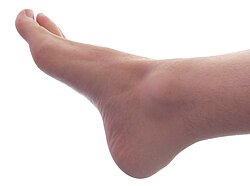 Rigid flatfoot, a condition where the sole of the foot is rigidly flat even when a person is not standing, often indicates a significant problem in the bones of the affected feet, and can cause pain in about a quarter of those affected.[14][15] Other flatfoot-related conditions, such as various forms of tarsal coalition (two or more bones in the midfoot or hindfoot abnormally joined) or an accessory navicular (extra bone on the inner side of the foot) should be treated promptly, usually by the very early teen years, before a child's bone structure firms up permanently as a young adult. Both tarsal coalition and an accessory navicular can be confirmed by X-ray. Rheumatoid arthritis can destroy tendons in the foot (or both feet) which can cause this condition, and untreated can result in deformity and early onset of osteoarthritis of the joint. Such a condition can cause severe pain and considerably reduced ability to walk, even with orthoses. Ankle fusion is usually recommended.[16]