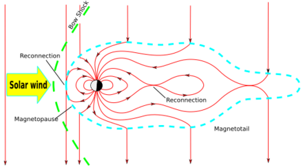 The solar wind also carries with it the Sun's magnetic field. This field will have either a North or South orientation. If the solar wind has energetic bursts, contracting and expanding the magnetosphere, or if the solar wind takes a southward polarization, geomagnetic storms can be expected. The southward field causes magnetic reconnection of the dayside magnetopause, rapidly injecting magnetic and particle energy into the Earth's magnetosphere.