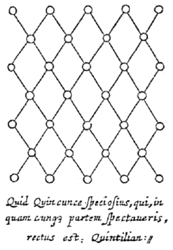 The discourse concerns itself with the use of the quincunx as a geometric pattern in art and nature.