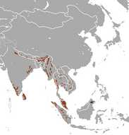 In 2020, the IUCN listed the Asian elephant as endangered due to an almost 50% population decline over "the last three generations"[150] Asian elephants once ranged from Syria and Iraq (the subspecies Elephas maximus asurus), to China (up to the Yellow River)[151] and Java. It is now extinct in these areas,[150] and the current range of Asian elephants is highly fragmented.[151] The total population of Asian elephants is estimated to be around 40,000–50,000, although this may be a loose estimate. Around 60% of the population is in India. Although Asian elephants are declining in numbers overall, particularly in Southeast Asia, the population in the Western Ghats appears to be increasing.[150]