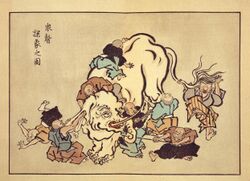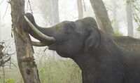 Elephants can exhibit bouts of aggressive behaviour and engage in destructive actions against humans.[179] In Africa, groups of adolescent elephants damaged homes in villages after cullings in the 1970s and 1980s. Because of the timing, these attacks have been interpreted as vindictive.[180][181] In parts of India, male elephants regularly enter villages at night, destroying homes and killing people. Elephants killed around 300 people between 2000 and 2004 in Jharkhand while in Assam, 239 people were reportedly killed between 2001 and 2006.[179] Local people have reported their belief that some elephants were drunk during their attacks, although officials have disputed this explanation.[182][183] Purportedly drunk elephants attacked an Indian village a second time in December 2002, killing six people, which led to the killing of about 200 elephants by locals.[184]